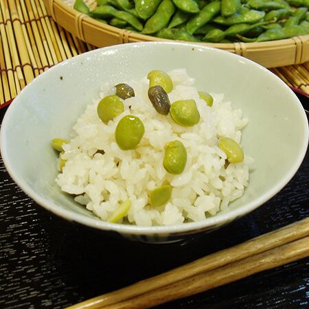 その庄内米を炊飯器で炊くときに、この炊き込みごはんの素を入れるだけで、簡単に贅沢な「だだちゃ豆ごはん」と「孟宗ごはん」が完成いたします。